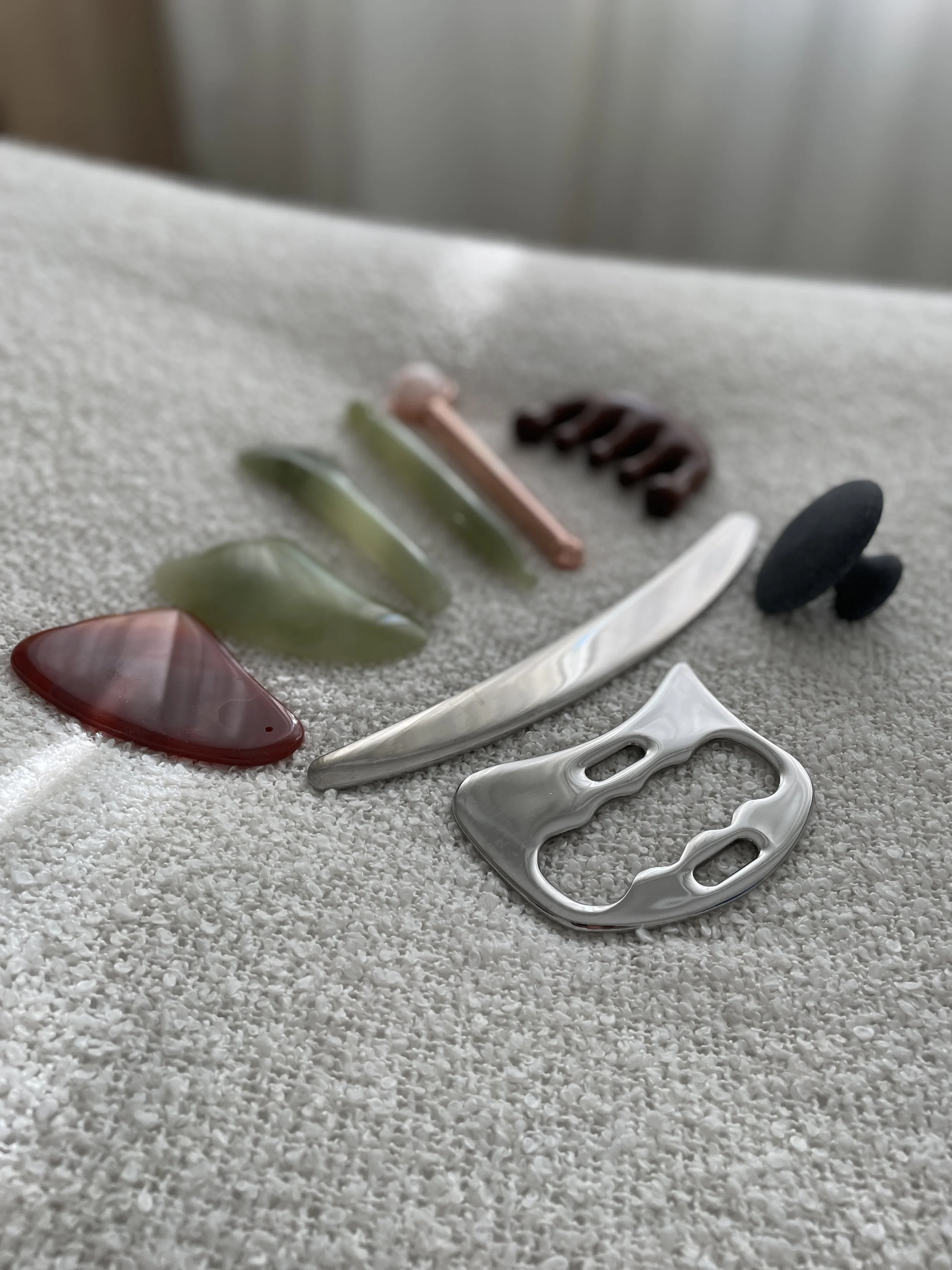 During treatment, the tools are applied with slow, mindful strokes to soften tight muscles, dissolve areas of restriction, and promote a deep sense of relief. This modality can help support mobility, reduce discomfort from chronic tension, and enhance overall tissue health.
